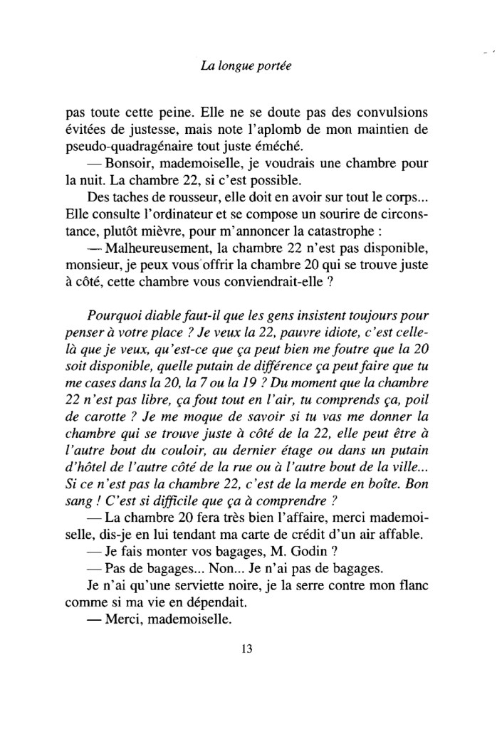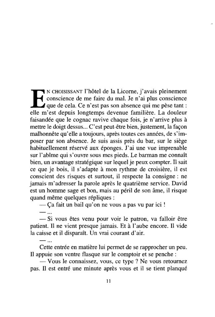 À quoi reconnaît-on les symptômes du bonheur ? Ils sont sans gravité au début de la maladie : une légèreté dans le geste, une insouciance parfois émouvante, des sourires innocents dont on ne saurait se méfier. De toutes les façons, ce sont des signes qui ne trompent pas. Ils présagent toujours un cataclysme quelconque. Le Plan s’occupe de tout, règle la question définitivement. On ne revient pas en arrière, on force le pas. Quitte à perdre de vue l’essentiel ; qui n’est jamais autre chose que ce vers quoi on allait depuis le commencement sans se douter qu’on y arriverait si vite.